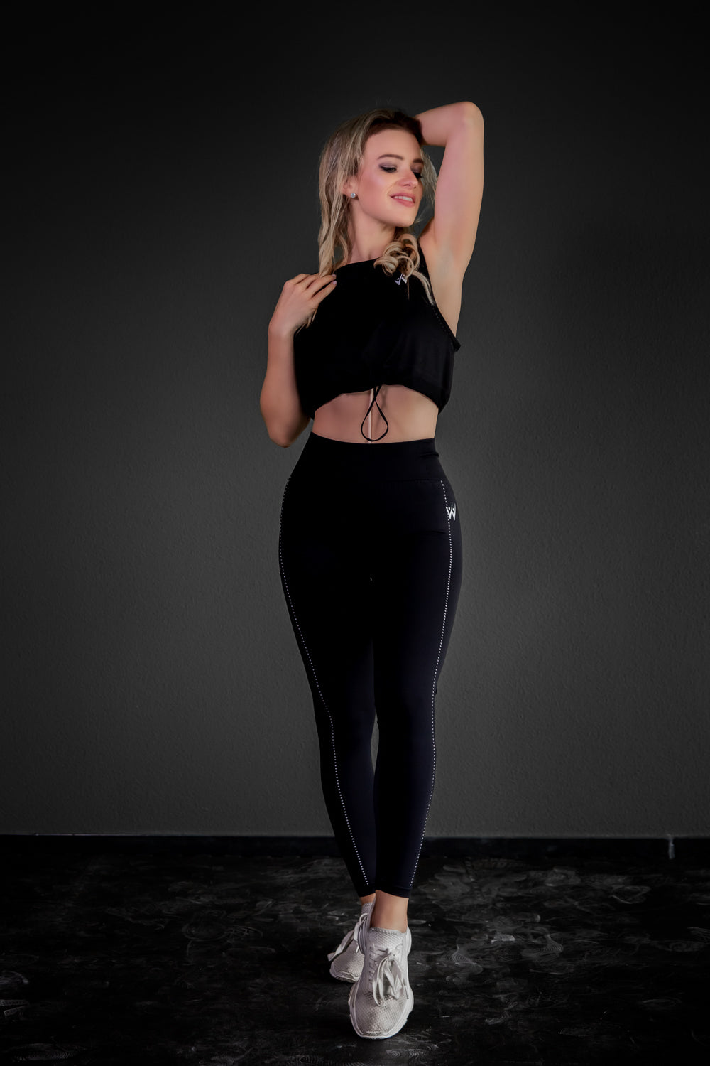 Besser kann man es nicht beschreiben, das neue 2nd Skin Set fühlt sich tatsächlich wie eine zweite Haut an. Designt in einem elastischem, super weichem Stoff, der Dich einfach nur wohl fühlen lässt. Wenn Du in die Legging schlüpfst, wirst Du sie bestimmt nie mehr ausziehen wollen. Das Top sieht nicht nur zum Sport klasse aus, sondern lässt sich auch lässig im Alltag kombinieren. Wir empfehlen einen Sports-Bra unter dem Top zu tragen. Das Top kann in zwei verschiedenen Varianten getragen werden. Durch den integrierten Gummizug am unterem Saum, kannst Du es entweder locker, oder zusammengezogen tragen. Das Material der Sportswear ist atmungsaktiv und schweißabsorbierend, damit Du Dich den ganzen Tag über wohl fühlst, sei es im Gym, auf der Yogamatte, Zuhause, oder einfach sonst unterwegs. Wir empfehlen eine hautfarbene Unterwäsche und eine dünne Slipeinlage zu tragen, um einen allfälligen Cameltoe oder See-Trough Look zu vermeiden. Bei der seitlichen Logo Platzierung auf der Legging kommt es zu einer kleinen Abweichung. Das Logo wird neu vor der seitlichen Linie erscheinen und nicht hinter der Linie wie auf dem Foto zu erkennen ist.